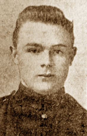 Gunner James Aylott (pictured right), wounded in the 'Great Push,' undoubtedly had a miraculous escape. The reservist working for Messrs J. W. Green Ltd before he rejoined his unit on August 23rd, 1914, was in a dug-out in which a shell burst, destroying a quantity of ammunition on July 23rd. He is now in the London Hospital suffering from numerous shrapnel wounds, five in the left leg, two in the right arm, one in the right ankle, three in the neck, with many scars and the loss of the right eye. -