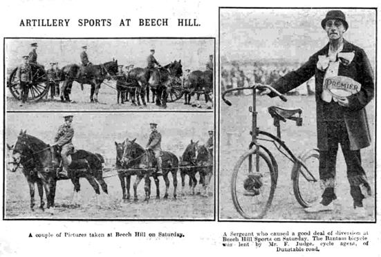- Many Lutonians on Saturday witnessed the sports held by the 2/4th (Derbyshire) North Midland Howitzer Brigade, Royal Field Artillery, whose training ground is in the Beech Hill district. Horse driving events, athletics, boxing and even a sack race were included.