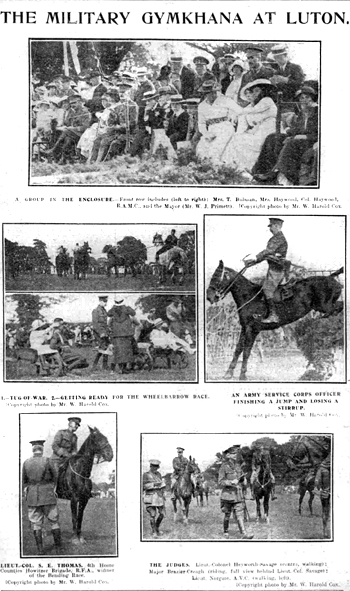 While the military authorities were wholly responsible for the arrangement of the programme, they left the financial side almost wholly to a committee of local townspeople. It was at first not proposed to the the gymkhana open to the general public, but when this was decided the military authorities agreed that money raised by an admission charge should be devoted to war charities.