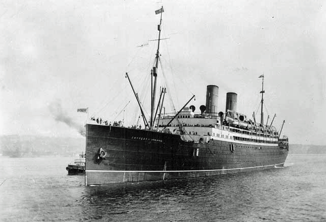 [RMS Empress of Ireland sank in the Saint Lawrence River following a collision with the Norwegian collier SS Storstad in the early hours of 29 May 1914. Of the 1,477 persons on board the ship, 1,012 died. The number of deaths is the largest of any Canadian maritime accident in peacetime - source Wikipedia.]