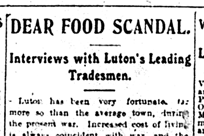 Luton has been very fortunate, far more so than the average town, during the present war, said the Telegraph report. Increased cost of living is always coincident with war, and the general increase in the cost of food in England, variously placed at 45 per cent to 70 per cent, has now become so acute that it has been a matter of daily comment in the House of Commons.