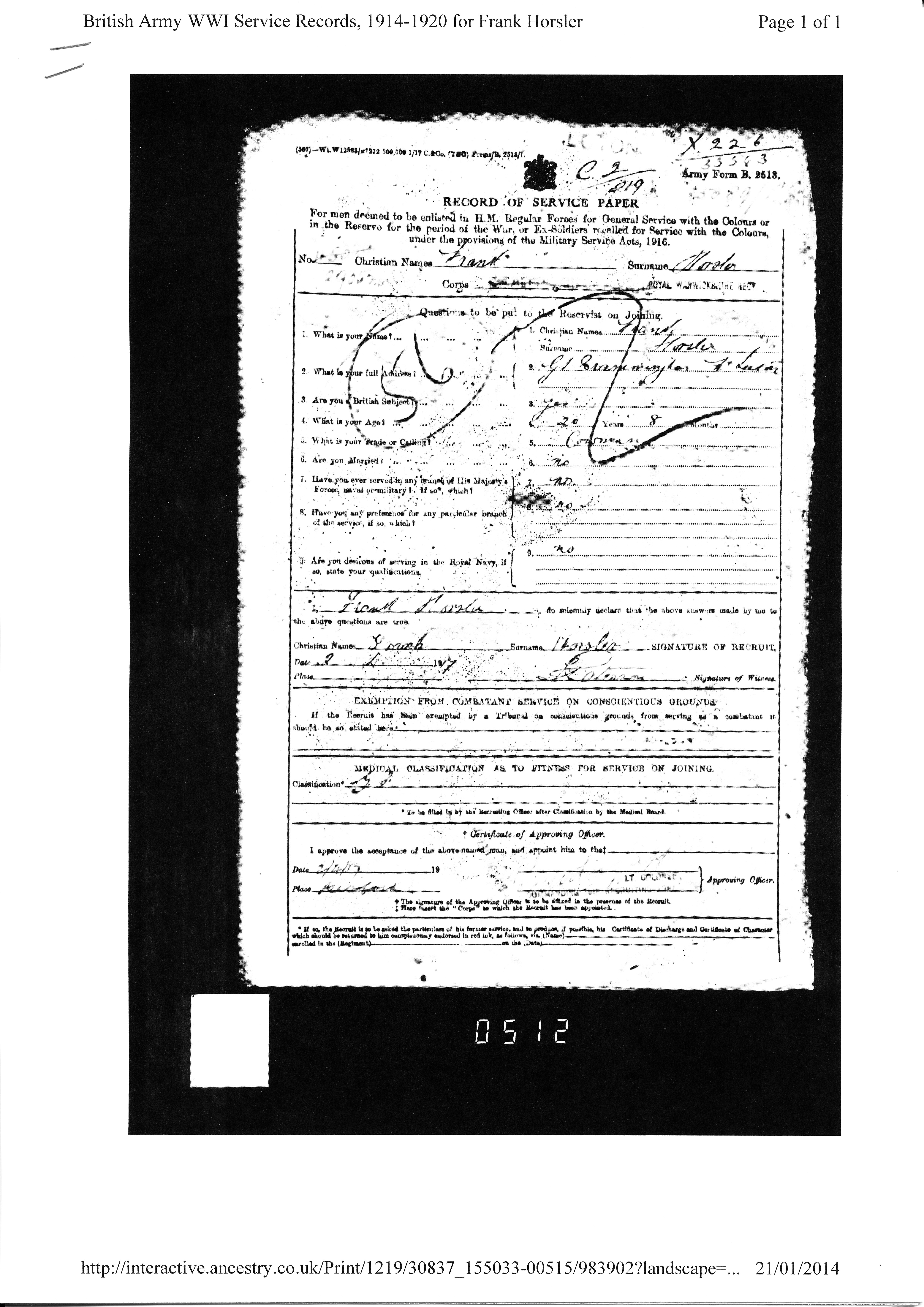 Frank enlisted in April 1917 and served in France and Italy. His full service record is available online from the National Archives.